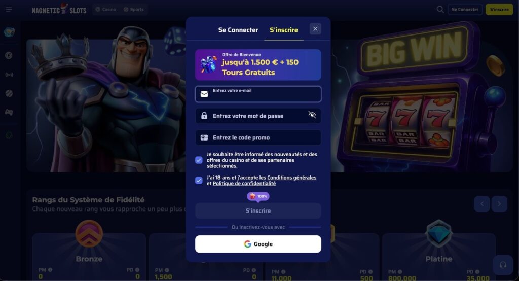L’inscription sur Magnetic Slots se réalise en moins de 3 minutes grâce à un processus simplifié et intuitif :