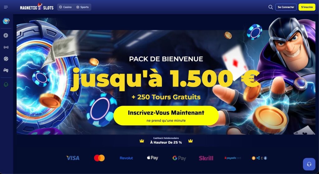 Magnetic Slots est un nouveau casino développé par des joueurs passionnés de l’univers des jeux en ligne. La philosophie du casino repose sur une compréhension approfondie des attentes des joueurs, ce qui transparaît dans chaque aspect de la plateforme.