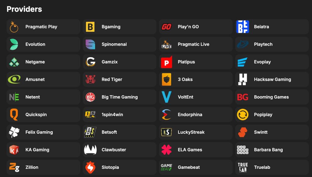 Need For Spin se distingue principalement par son vaste choix de jeux de casino, collaborant avec plus de quarante éditeurs réputés dans le secteur. Parmi eux figurent des noms incontournables comme Pragmatic Play, Evolution Gaming, NetEnt ou Push Gaming, assurant une grande régularité et diversité dans les expériences proposées. Pour en savoir plus, vous pouvez également consulter le site officiel du casino Need For Slots avec l’avis des joueurs et les meilleurs bonus disponibles 🙂