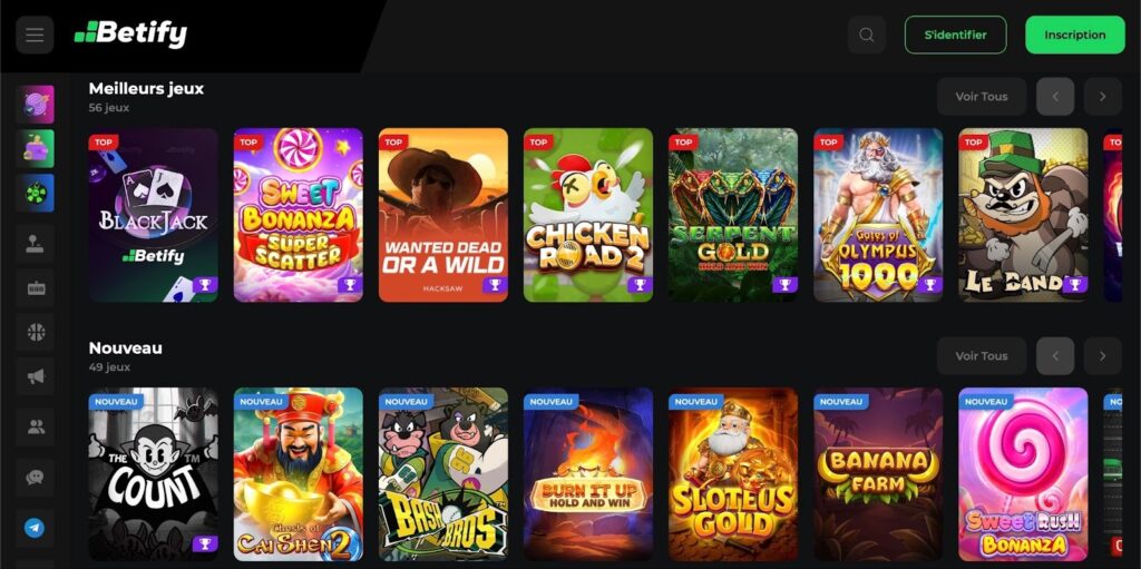 Le catalogue de Betify comprend également d’autres créations d’Inout Games comme Rock Paper Scissors, Chicken Road et Twist, permettant aux amateurs du fournisseur de varier les plaisirs. L’interface du casino est intuitive et le processus d’inscription rapide.