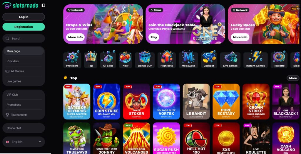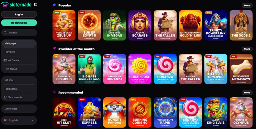 Avec 121 fournisseurs intégrés via SoftSwiss, Slotornado figure parmi les catalogues les plus larges parmi les plateformes lancées en 2025.